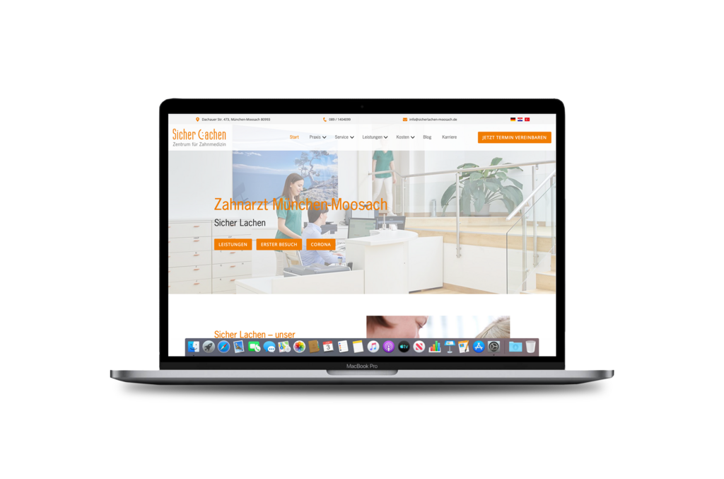 Die Übernahme dieser Zahnarztpraxis haben wir mit der Erstellung der Website begleiten dürfen. Mit lokaler Suchmaschinenoptimierung und Reputationsmanagement haben wir die öffentlichen Daten der Praxis immer unter Kontrolle.